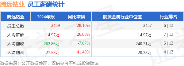 在线股票配资排名 腾远钴业(301219)年报:2024年员工人均薪酬14.97万元,人均创利同比大幅提升